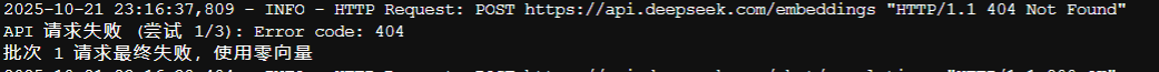 于是改换了Deepseek的API,前面顺利生成,但是部分报错使用零向量,最终得分22。