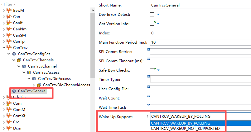 CanTrcvGeneral里面没有特殊需求的时候保持默认配置就行,这里着重介绍几个比较重要(实际项目中会用到)的配置项: