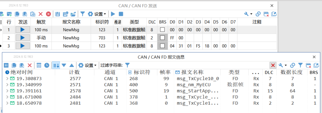 我们发送了一阵XCP报文,XCP模块能正常接收,说明CanTrcv的Rx功能正常。