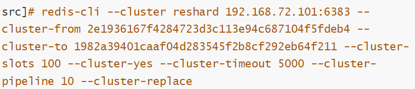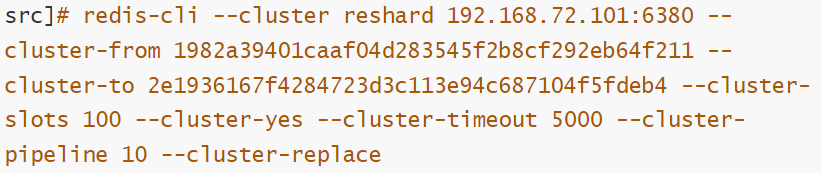 --cluster-from:表示slot目前所在的节点node ID,多个ID用逗号分隔