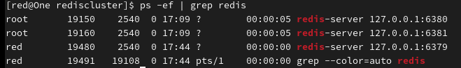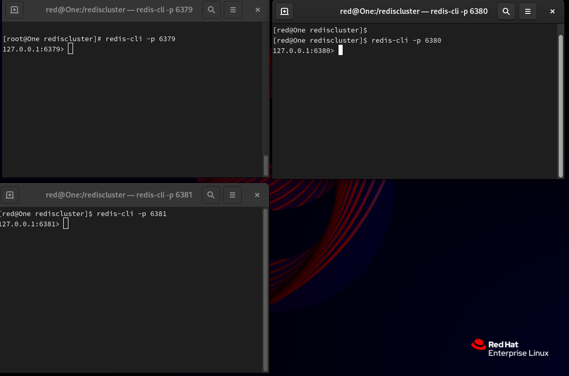 分别使用三个窗口的 redis-cli 来连接这三台服务: