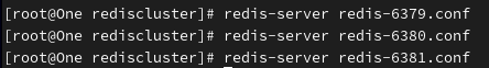 然后在 rediscluster 目录下分别创建三个文件: redis-6379.conf、redis-6380.conf 和 redis-6381.conf。并分别写入文件内容: