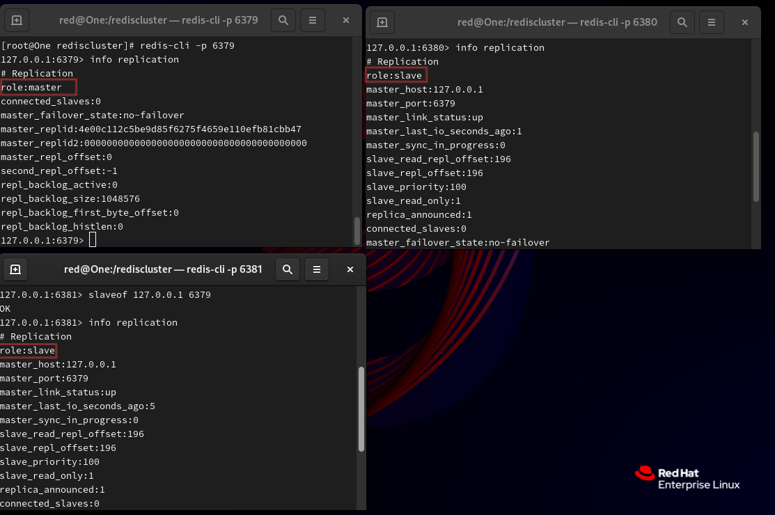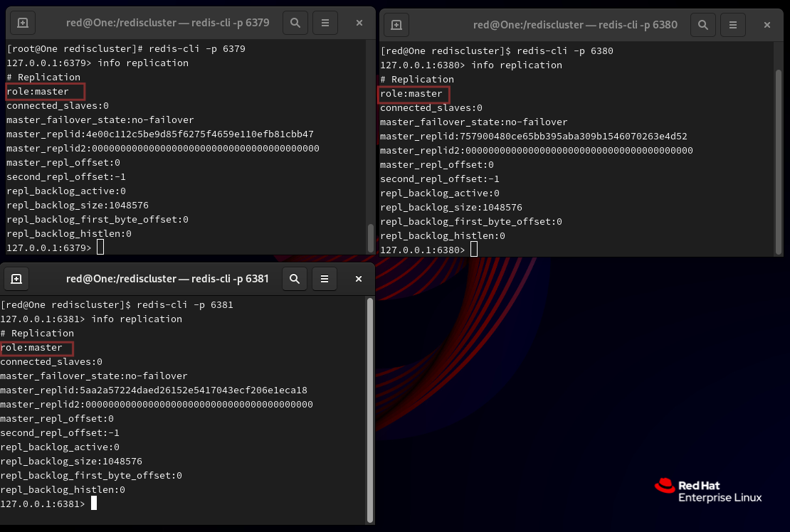 分别启动三台 Redis 服务器,并验证服务: