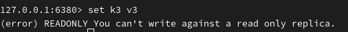 如果我们在从服务器中添加数据,则会报错。因为从服务器只能读。如果从机宕机了,重启后会变为主服务器,需要重新执行 slaveof <ip> <port> 命令;如果主机宕机了,重启后一切正常。