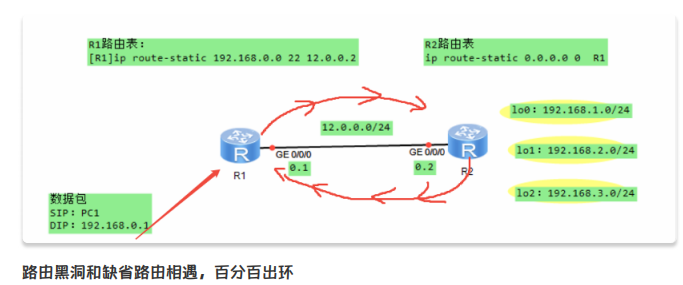 汇总过程中,若包含网络中实际不存在的网段,可能会造成流量有去无回,浪费链路资源和设备资源
