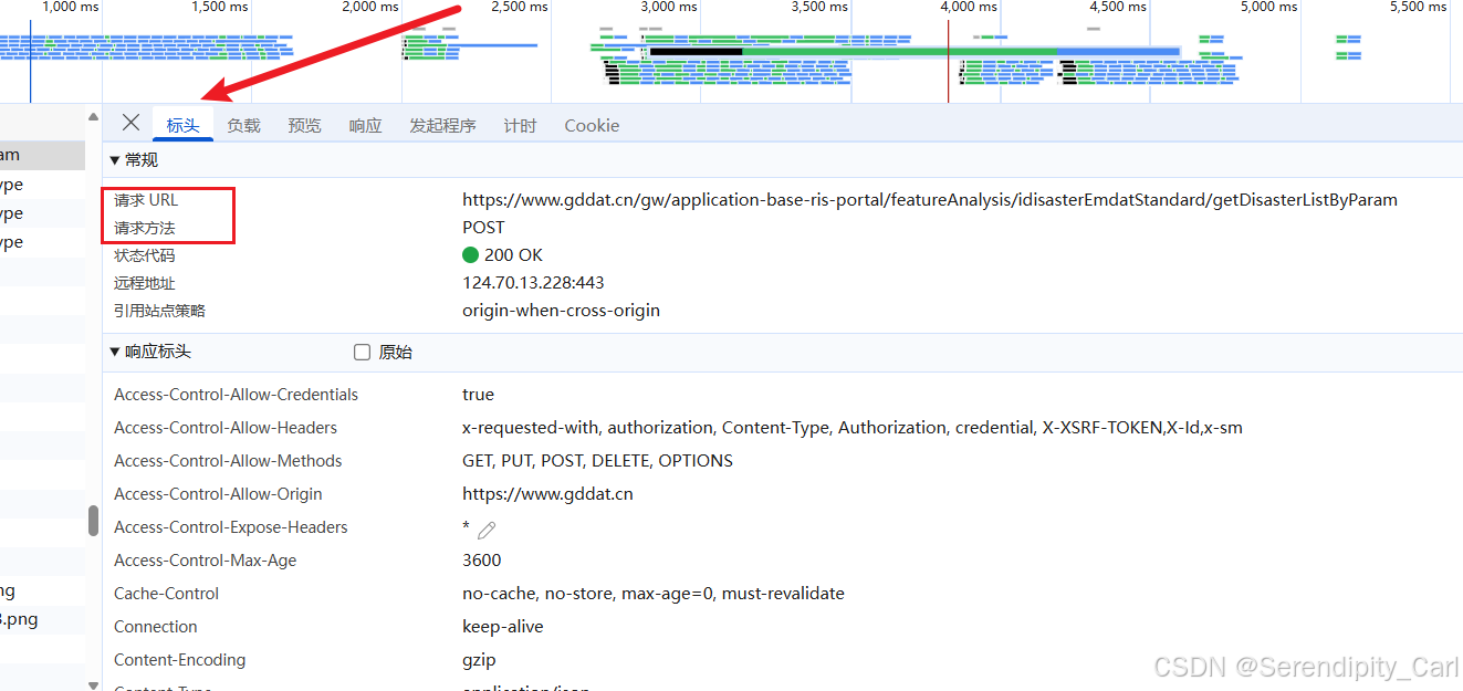 然后 点击标头 这里有请求的一些基本信息 可以查看
