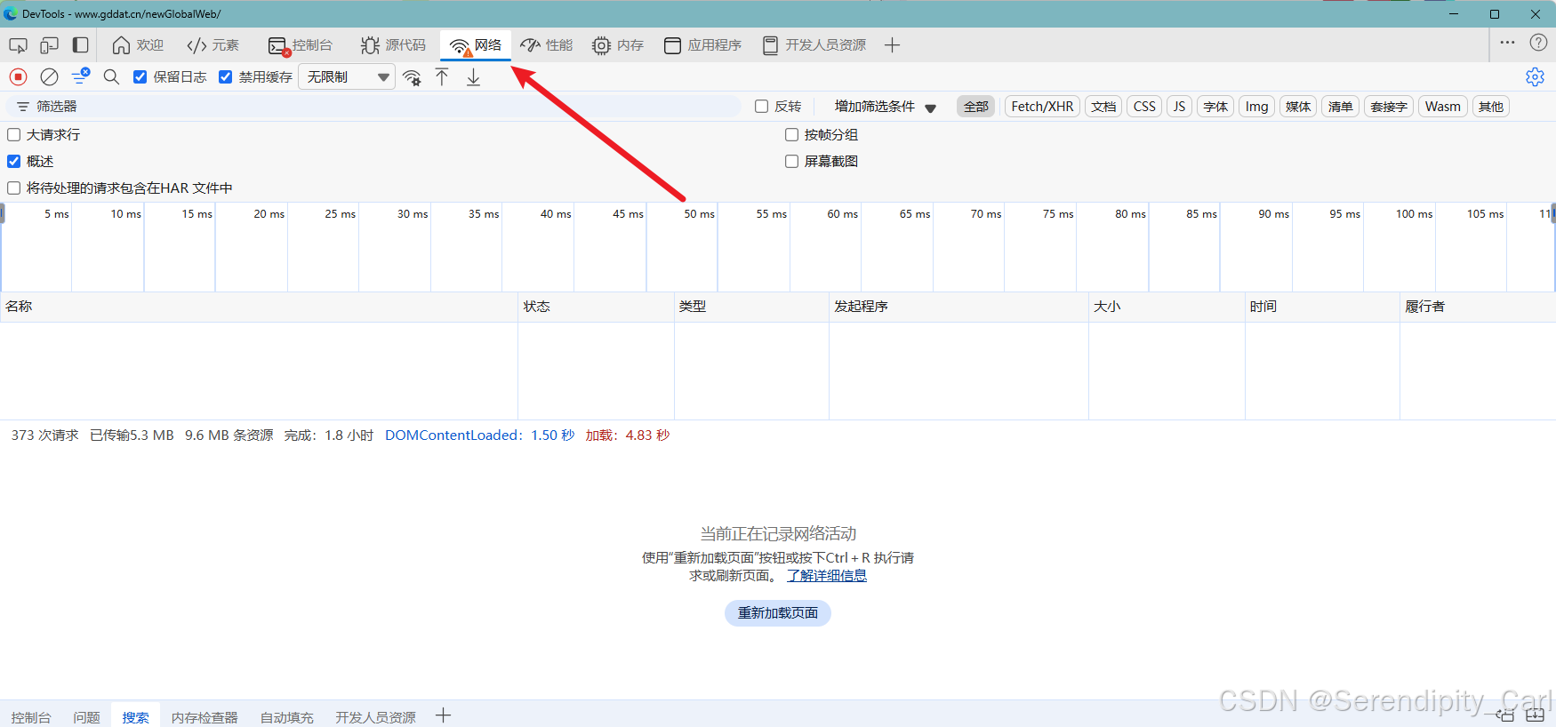 点击网络 接着刷新当前界面 或 Ctrl+R(快捷键刷新)