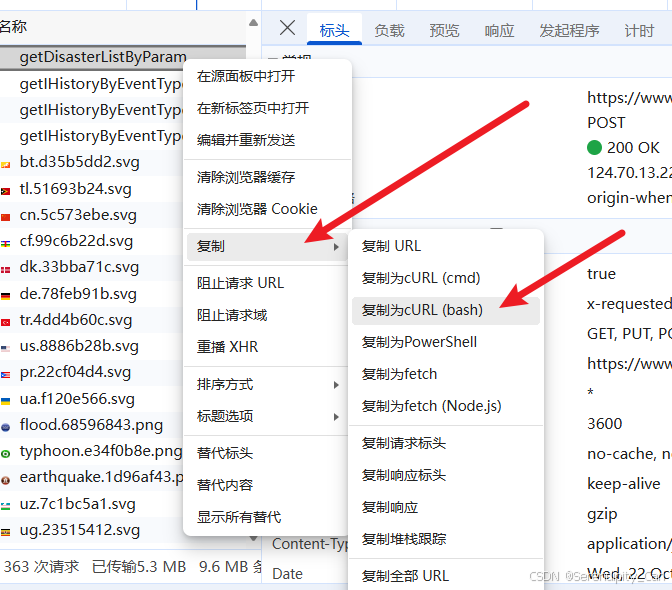 右击相应的数据包 点击复制cURL(bash) 如上图所示 注意是bash