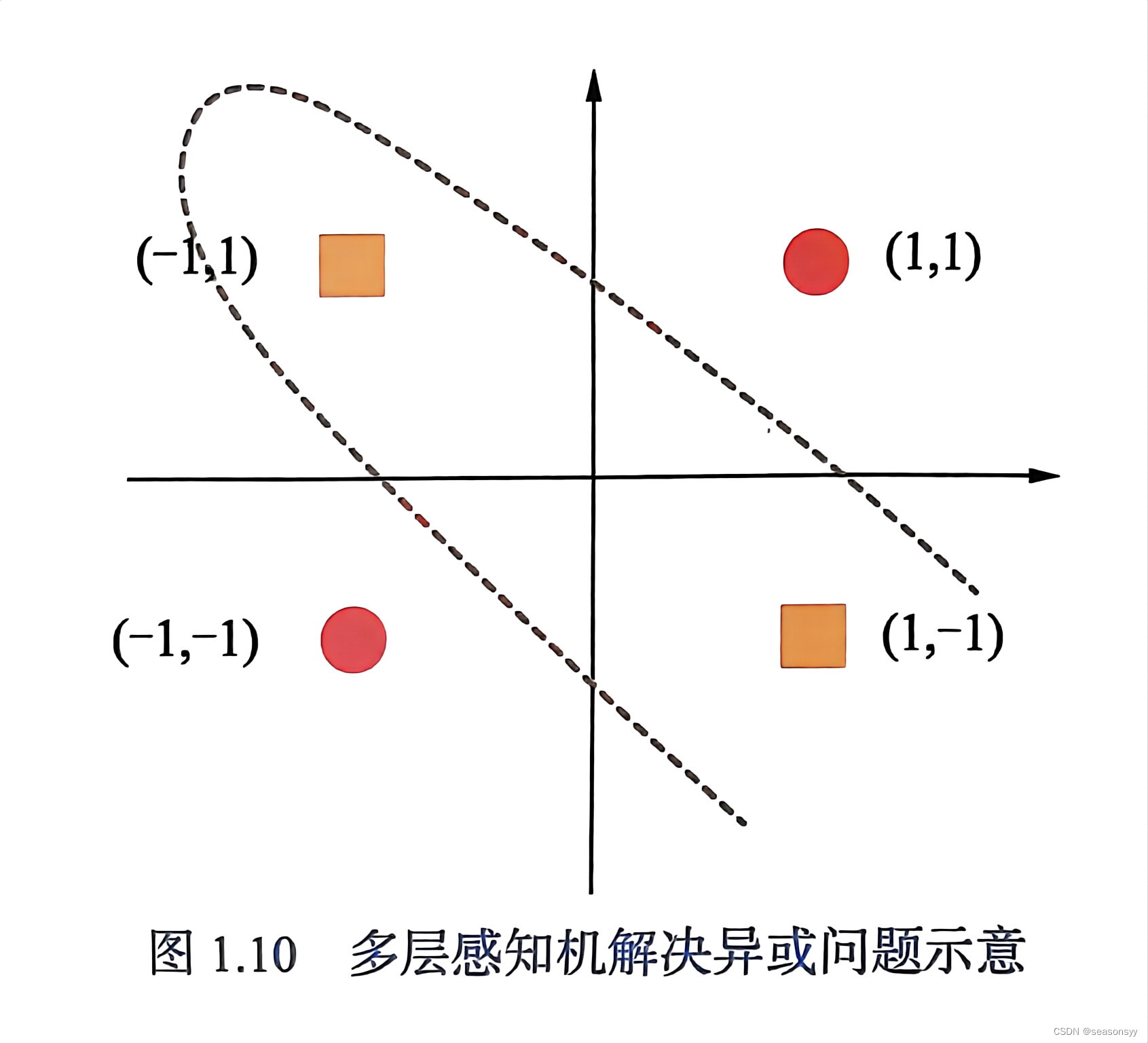 - 但遇到“异或问题”(XOR)就傻眼了—— 使用直线,不开0和1,区分不了0和1。该升级网络学不了,解决不了!这就是MCP的异或问题。