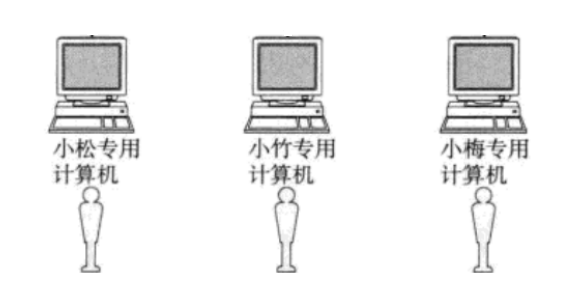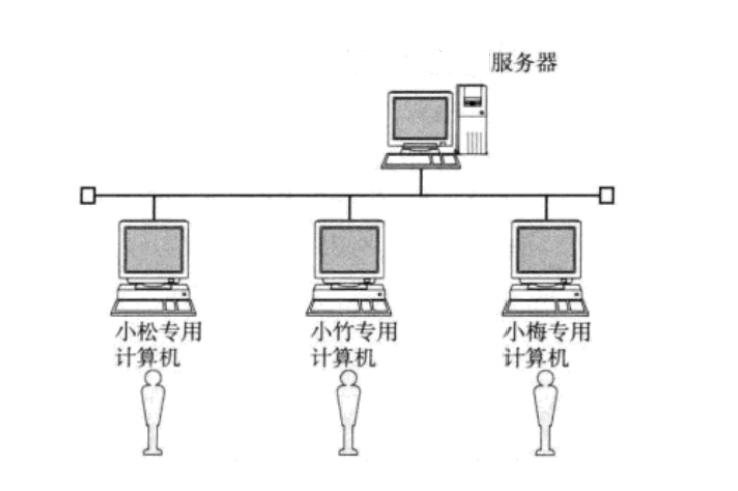 后来将多台计算机连接在一起,完成数据共享,如下图所示