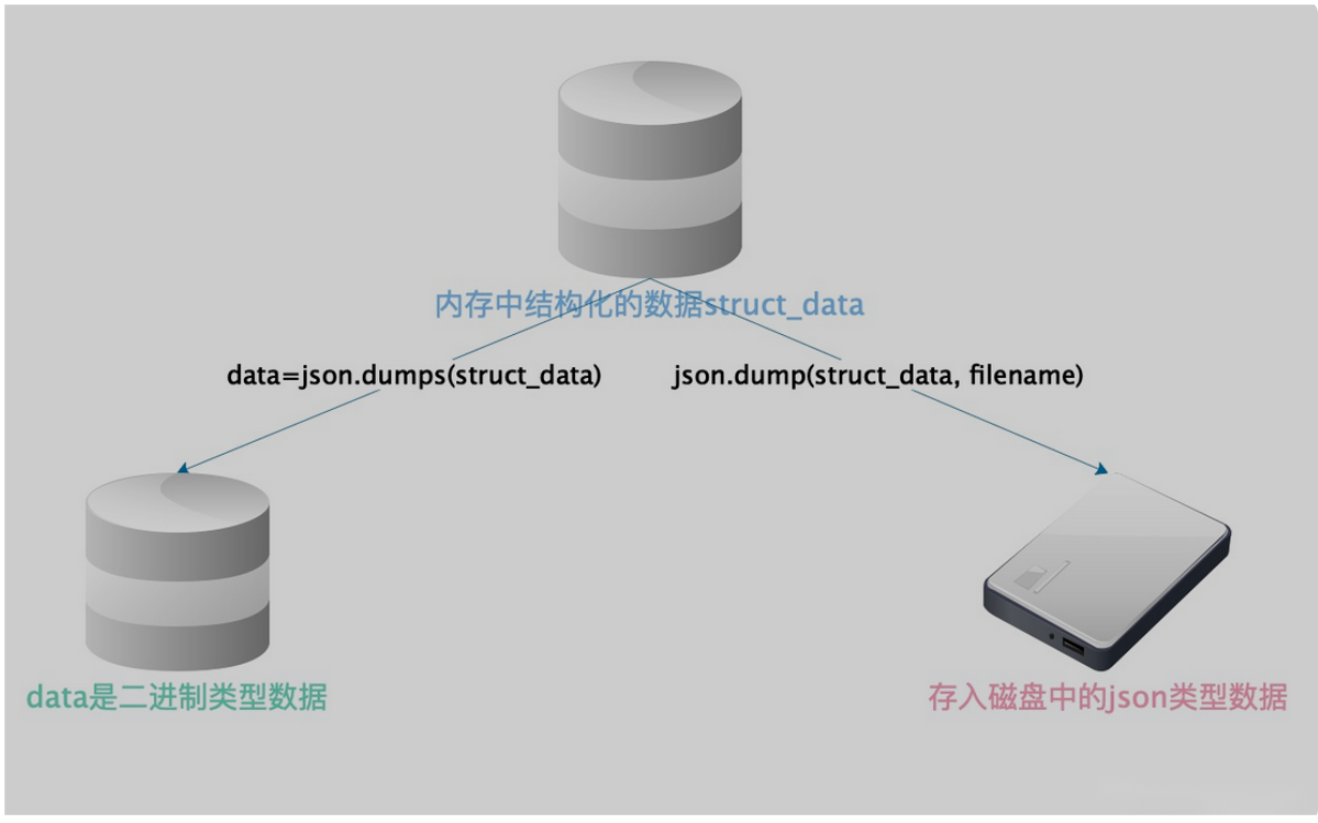 把对象(变量)从内存中变成可存储或传输的过程称之为序列化,在Python中叫pickling,在其他语言中也被称之为serialization, marshalling, flattening.