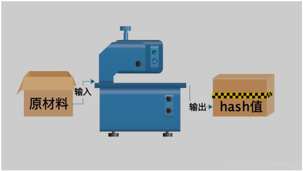3.只要使用的hash算法不变,无论校验的内容有多大,得到的hash值长度是固定的,可以用于对文本的哈希处理hash算法其实可以看成如下图所示的一座工厂,工厂接收你送来的原材料,经过加工返回的产品就是hash值