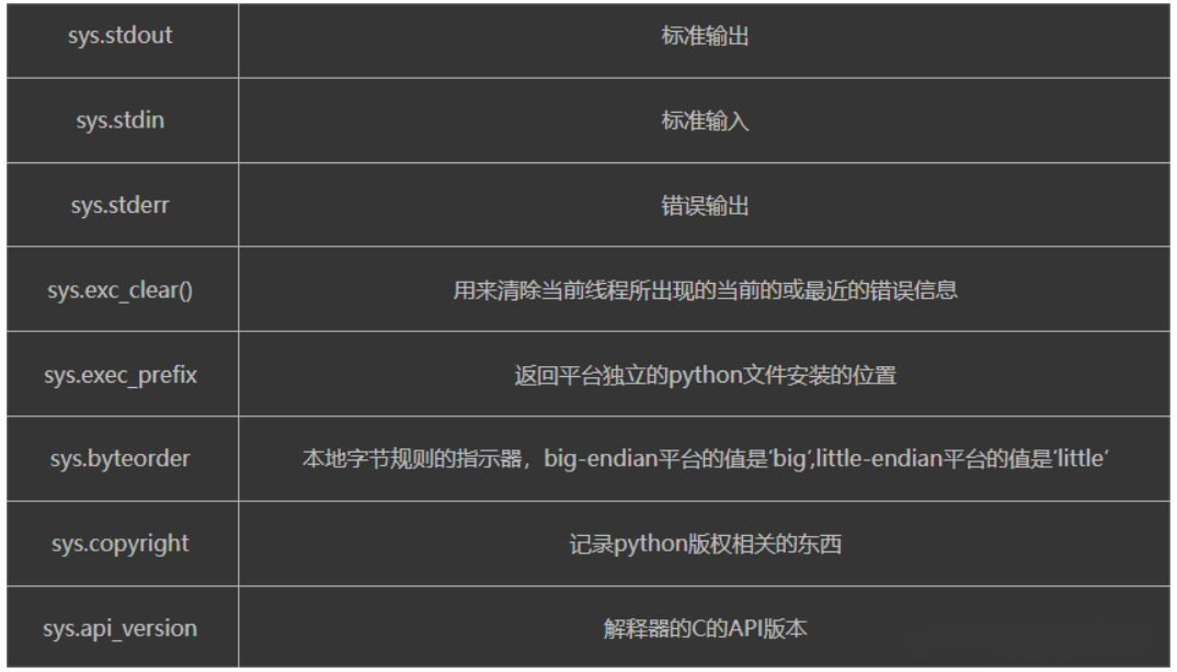 1.sys模块负责程序与python解释器进行交互