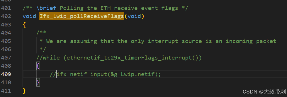 这个iLLD函数周期性的去polling接收数据,它跟MCAL中的EthIf_RxIndication被接收中断触发,功能几乎是一样的。但是!