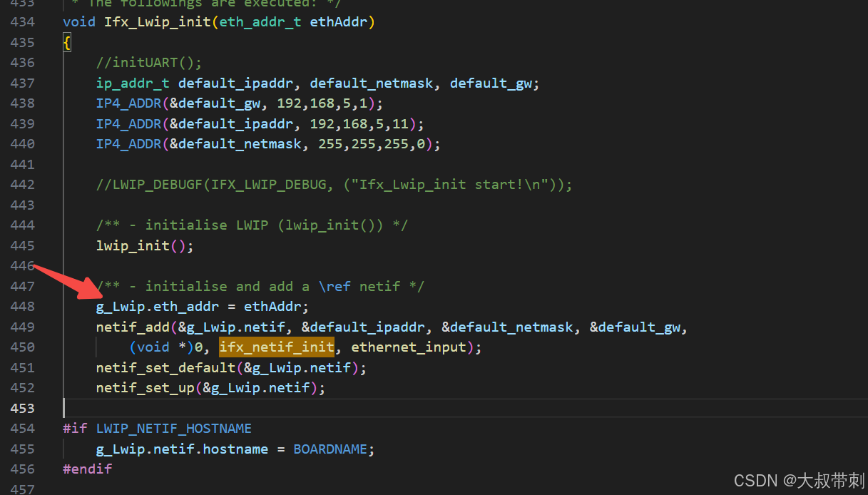 这个g_Lwip是个全局变量,也就是对Lwip各项配置属性做个一个结构体,所以这一块我们还是要保留的。后面有很多函数都是以g_Lwip作为参数,比如: