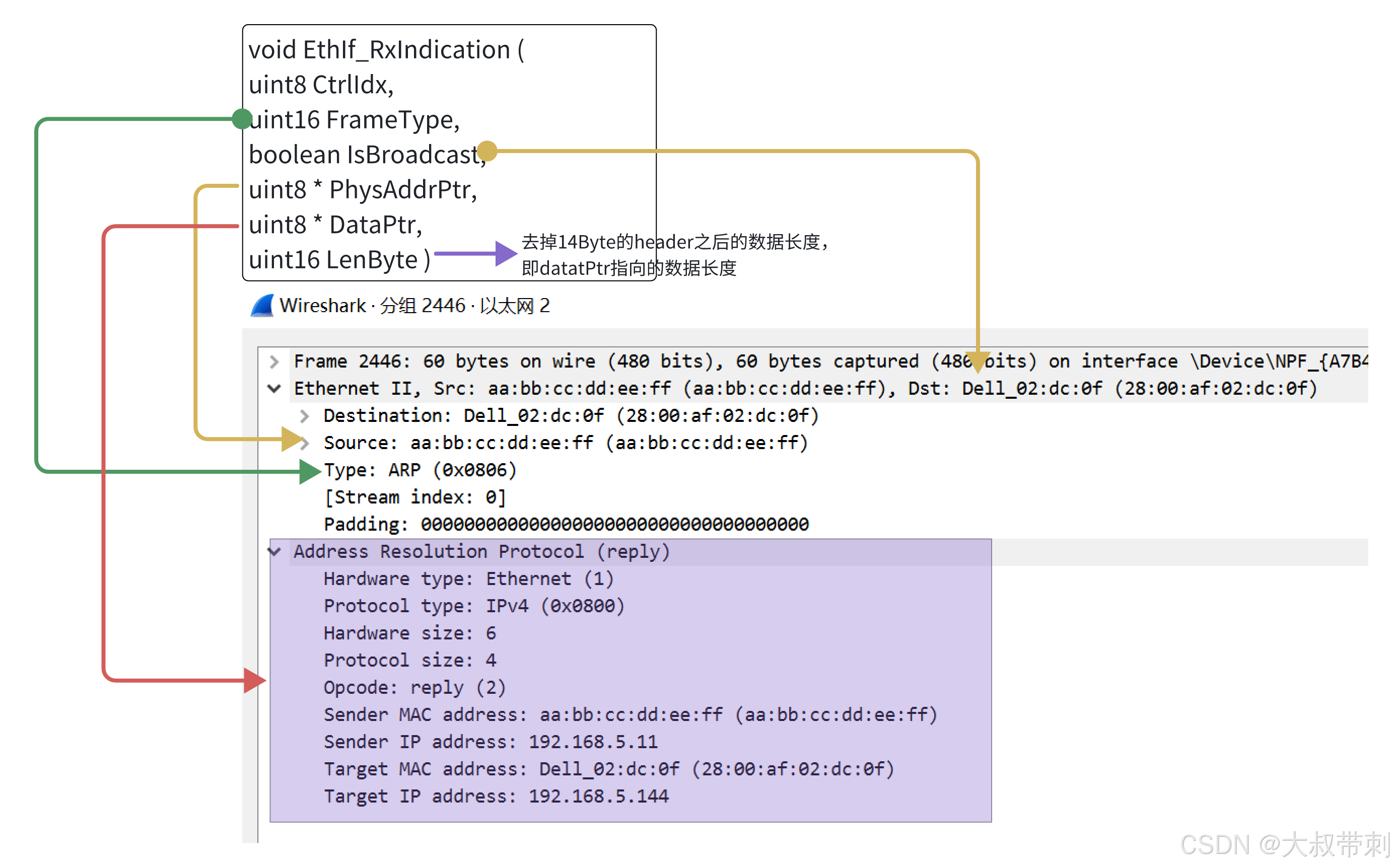 3. MCAL接口在EthIf_RxIndication接口之前已经完成了链表遍历,并且把ETH头信息去掉了。