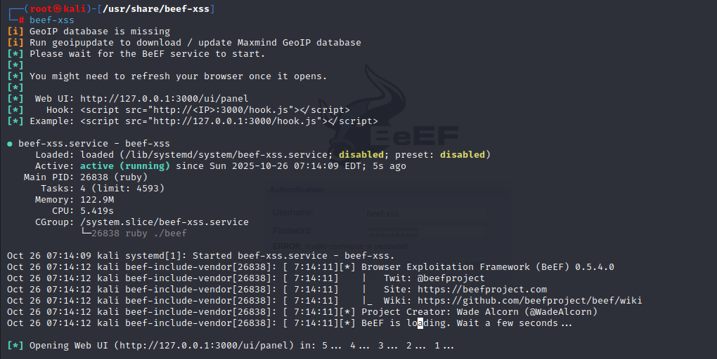 使用命令beef-xss 启动后网页无法访问,查看启动日志,发现Active为failed,按照 beef-xss各位报错解决方案 进行重新安装后还是不行