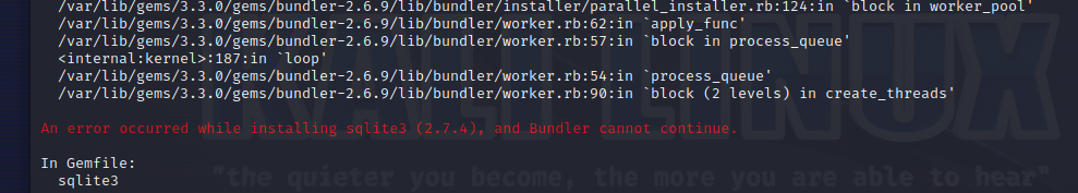 目录下有 Gemfile.lock 文件后,执行bundle install安装相关依赖,如提示下图内容,则进行单独安装