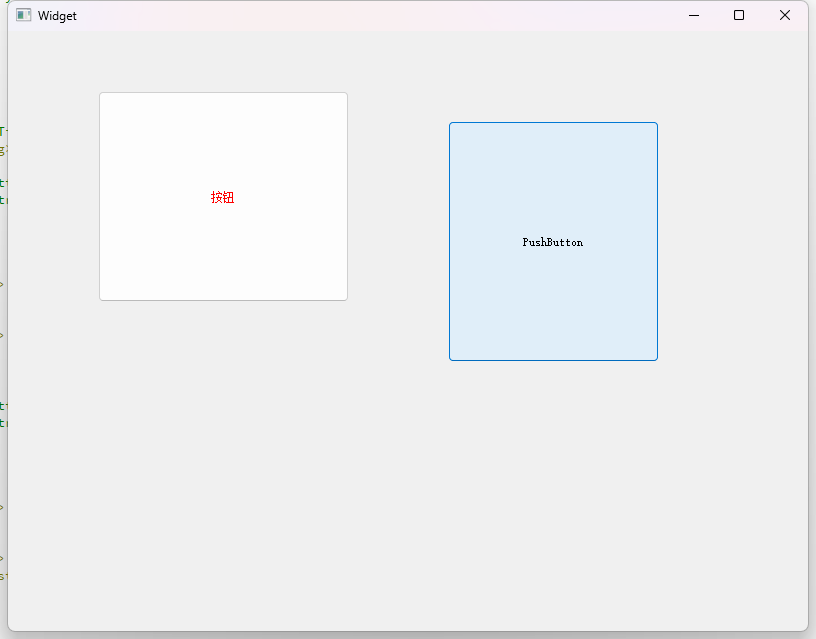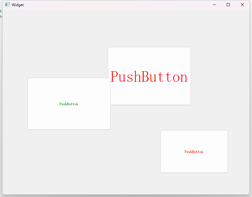 {ui->setupUi(this);ui->pushButton->setStyleSheet("QPushButton{font-size:50px;}");ui->pushButton_2->setStyleSheet("QPushButton{color:green;}");