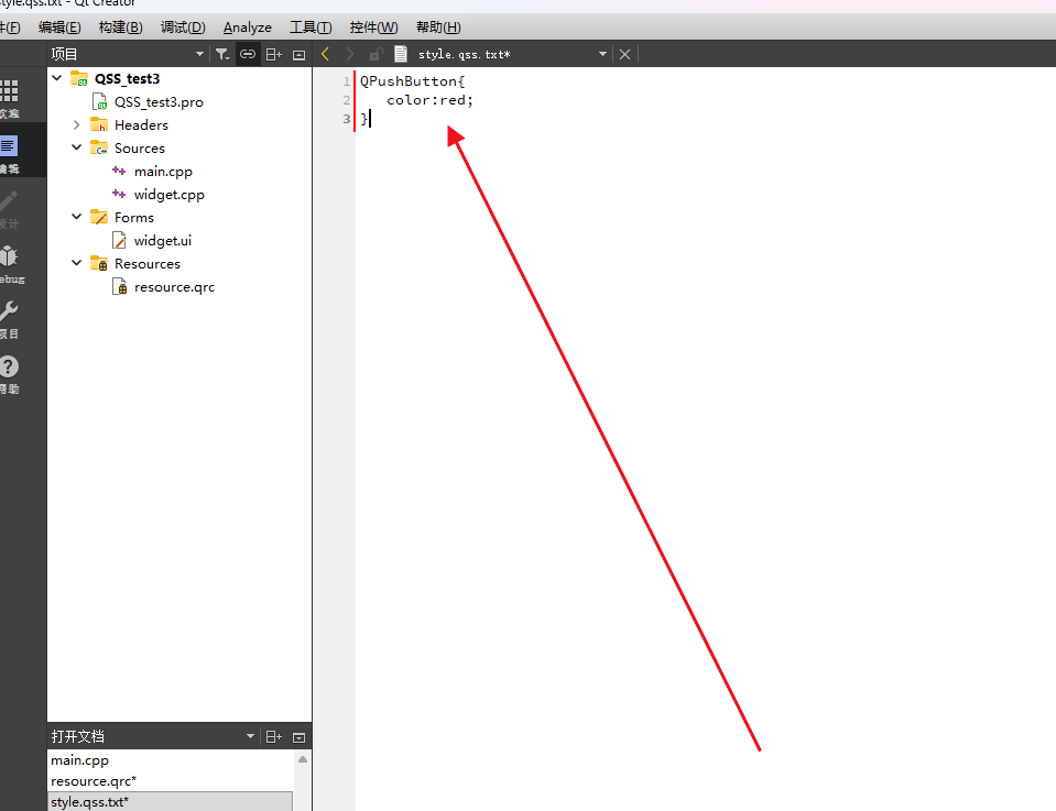 {QApplication a(argc, argv);a.setStyleSheet("QPushButton{color:red;}");//类型选择器:只要是QPushButton类型的都会生效Widget w;w.show();return a.exec();