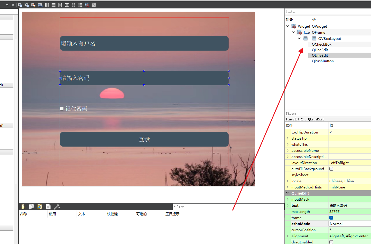 ❌️注意:直接给底层窗口设置背景会失效,所以我们可以把这个界面加入到QFrame控件,他是 QWidget 的一个子类。我们除了可以使用 background-color 来设置背景图片,也可以使用 border-image 来设置,我们更加推荐 border-image ,因为他可以随着窗口的变化大小而变化。