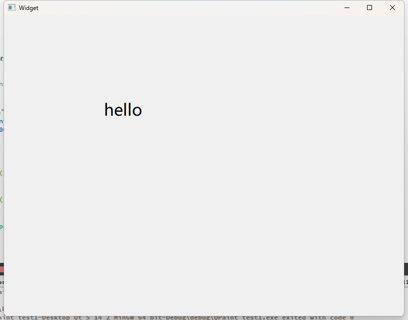 {(void)event;QPainter painter(this);//this:绘制的设备//绘制文本QFont font("微软雅黑",24);painter.setFont(font);painter.drawText(200,200,"hello");}
