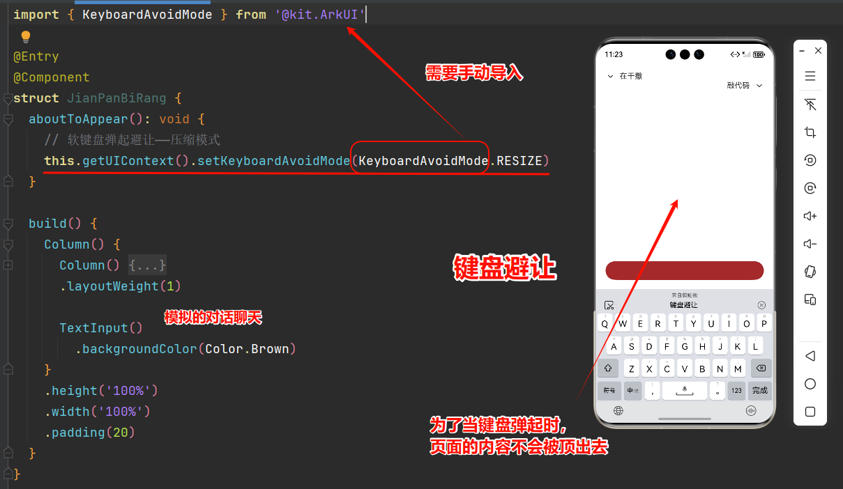 import { KeyboardAvoidMode } from '@kit.ArkUI'//需要手动引入,不会自动引入@Entry