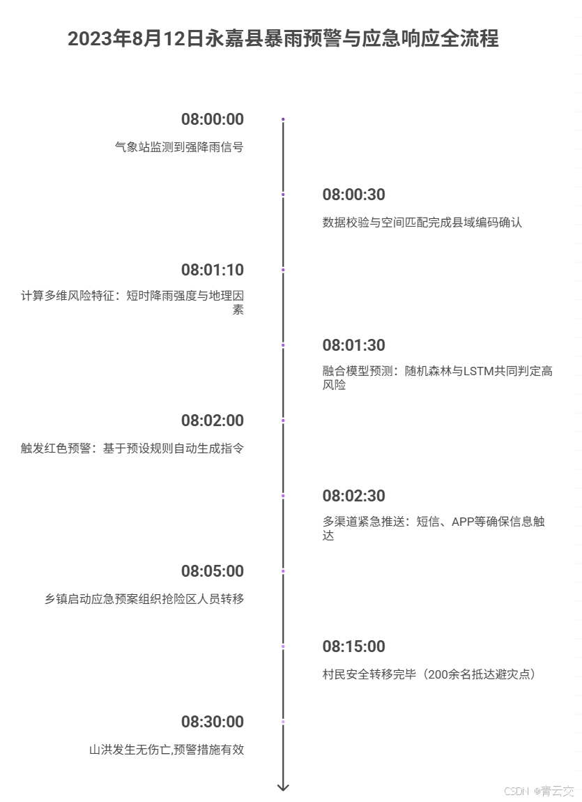 2023 年 8 月 12 日,永嘉县山区突发短时强降雨,新平台从数据采集到发出红色预警仅用 2 分钟,200 余村民提前 15 分钟转移,最终零伤亡 —— 那一刻,所有的熬夜、争执、压力都有了意义。