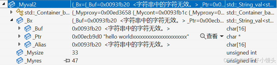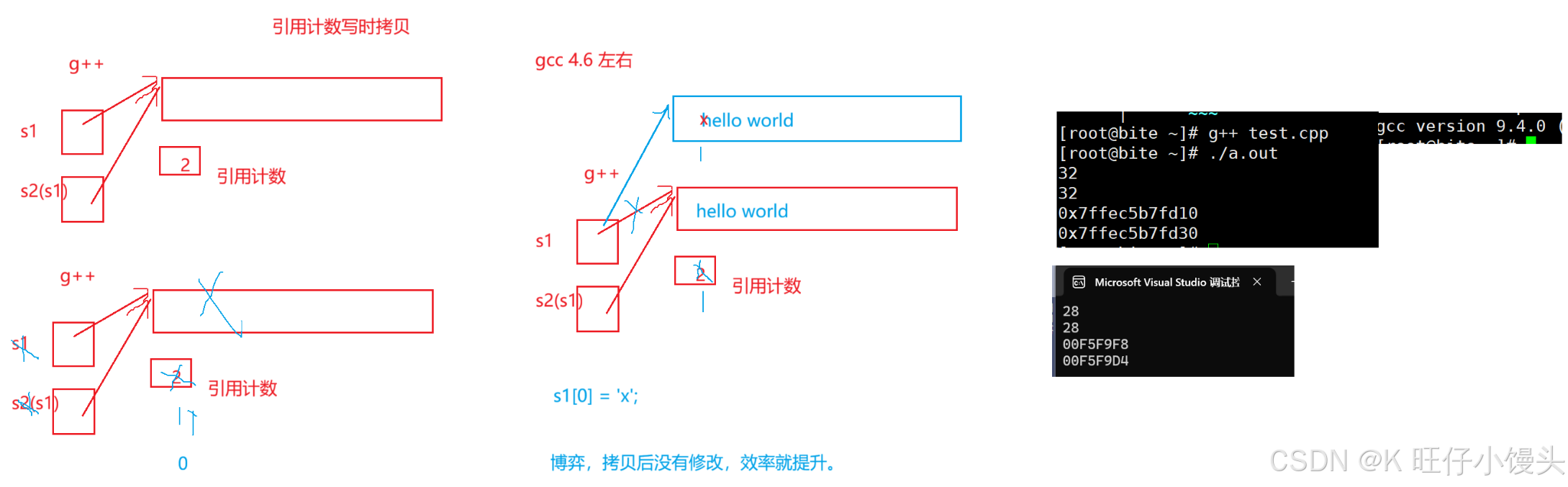 {void test_string9(){string s1("hello world");cout << s1 << endl;string s2(s1);cout << s2 << endl;string s3("xxxxxxxxxxxxxxxx");s1 = s3;cout << s1 << endl;cout << s3 << endl;}
