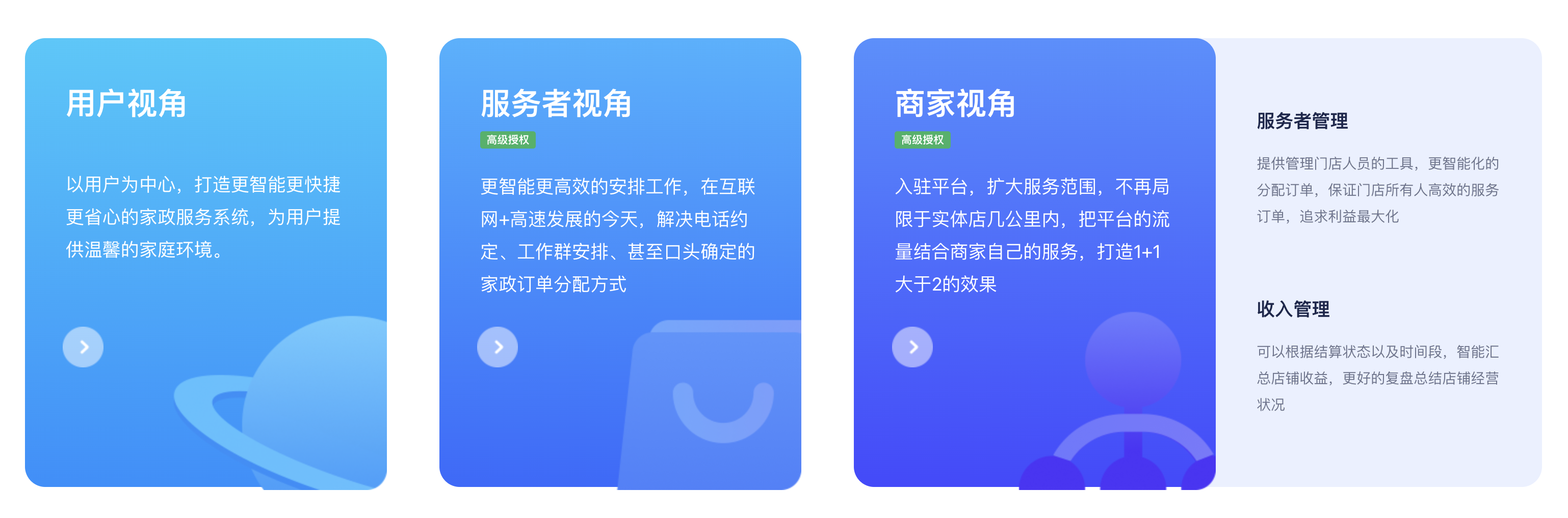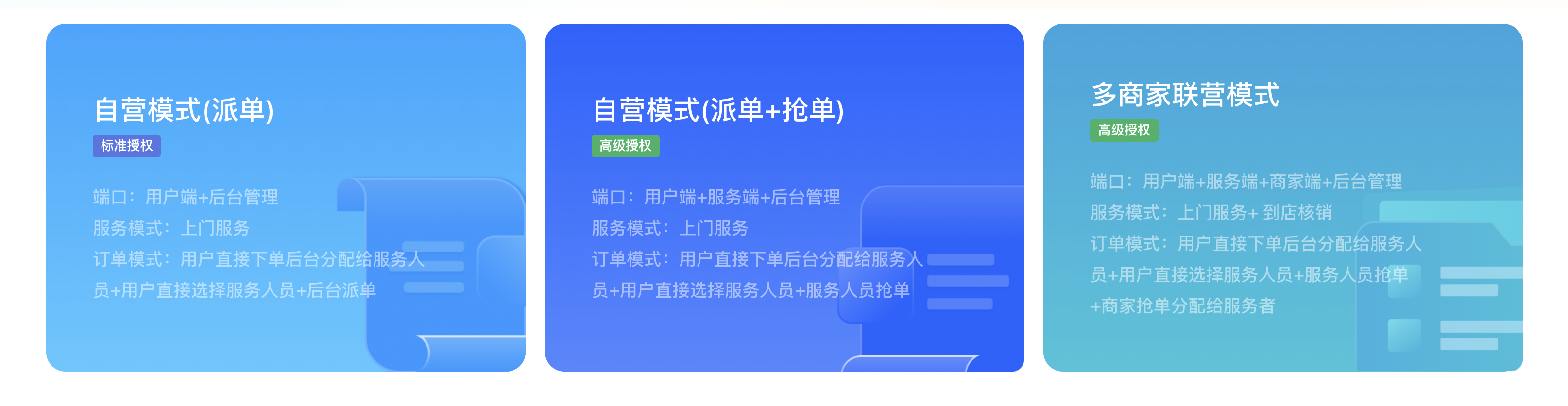同城预约、上门服务、到店核销家政系统,用户端、服务端、门店端各端相互依赖又相互独立,支持选择项目、选择服务人员、选择门店多种下单方式,支持上门服务和到店核销两种服务方式,支持自营和多商家联营两种运营模式,同时支持多城市并且设置每个城市专属服务项目。提供前后端无加密源代码,方便自行二次开发,私有化部署。