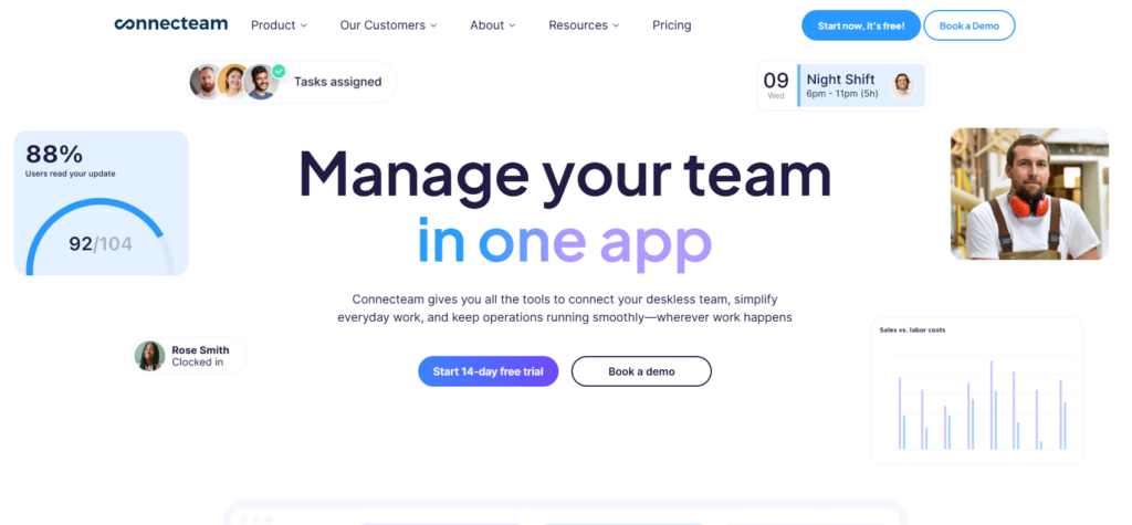 Connecteam 是一款专为“非桌面”(Deskless)员工设计的移动优先型一体化管理应用,在国际市场上很受欢迎。它的定位是为那些不在办公室工作的员工(如现场服务、清洁、物流或零售人员)提供一个集沟通、运营和人力资源管理于一体的平台。