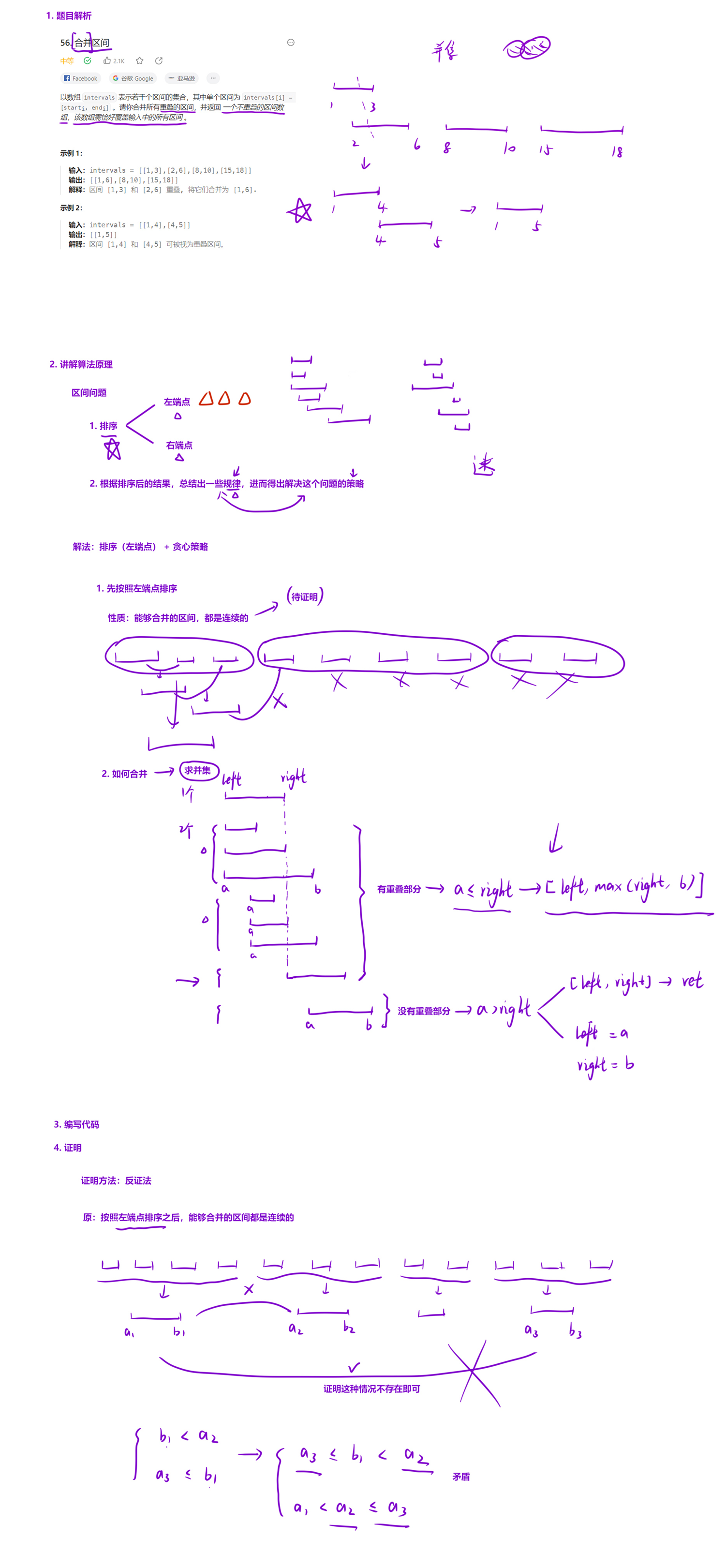 a. 按照左端点排序,我们发现,排序后有这样一个性质:「互相重叠的区间都是连续的」;