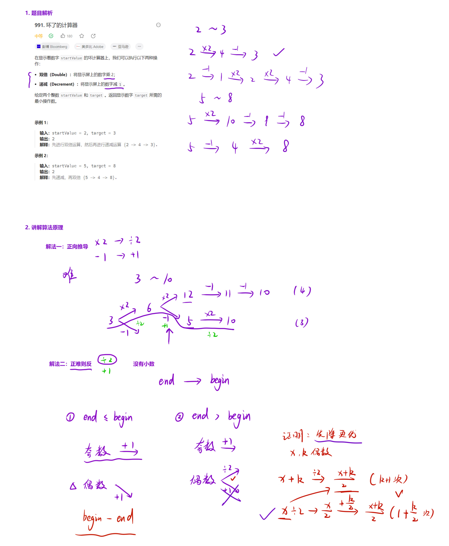 end > begin的时候,对于「奇数」来说,只能执行「加法」操作;对于「偶数」来说,最好的方式就是执行「除法」操作这样的话,每次的操作都是「固定唯一」的。