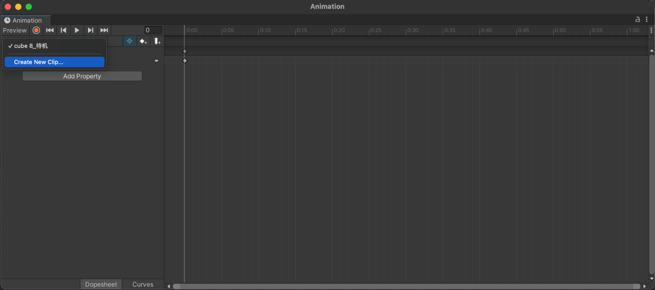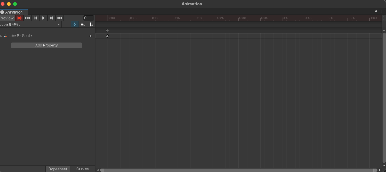 2. 在 “cube 8_待机” 动画片段,0帧地方,插入一个关键帧。