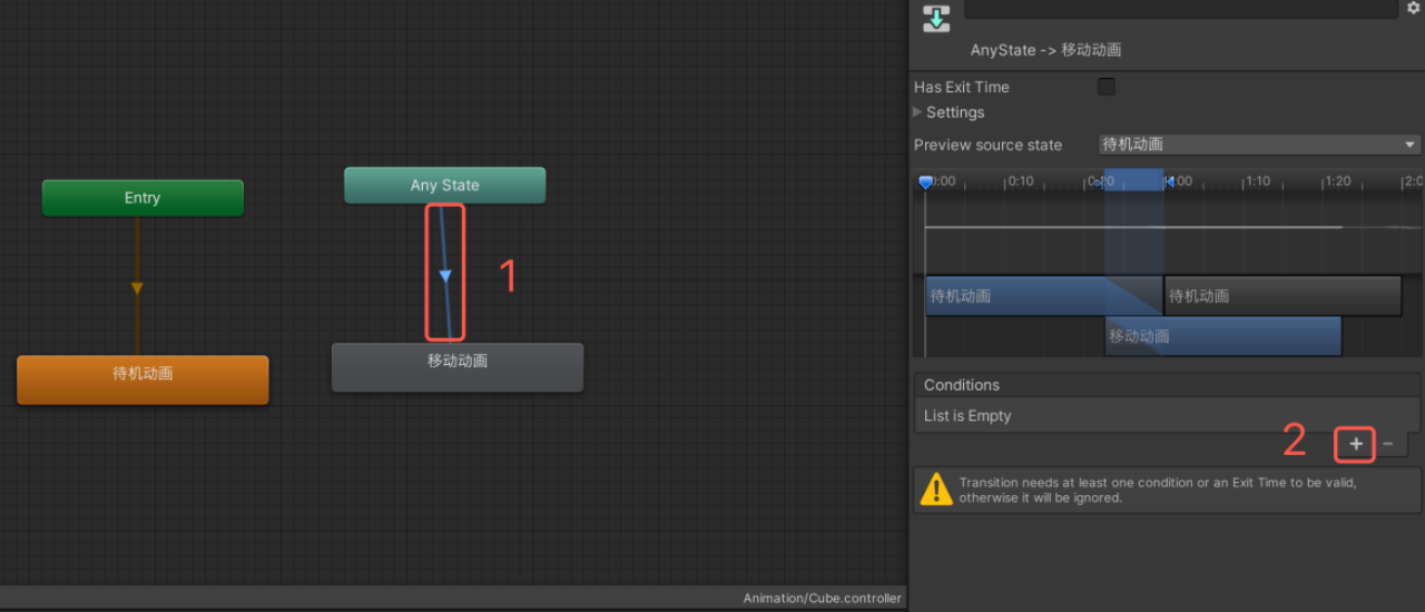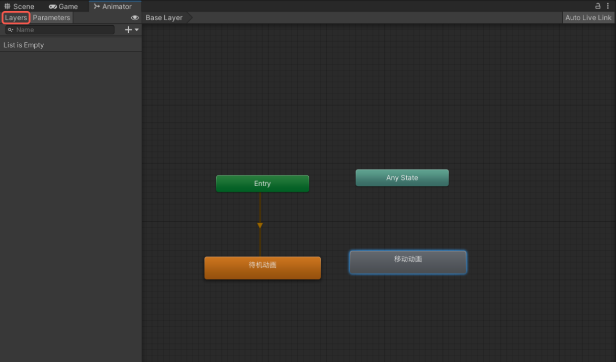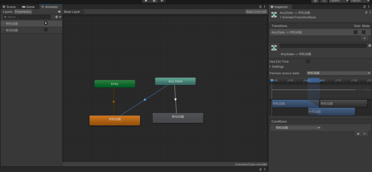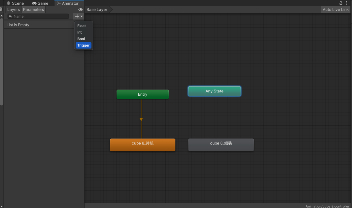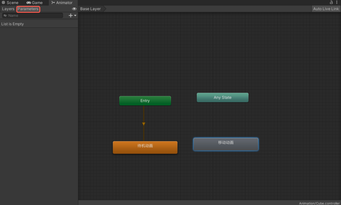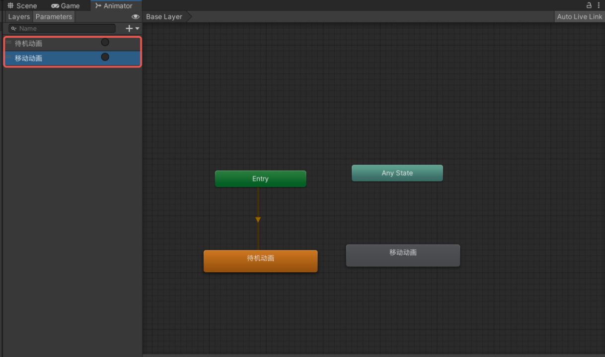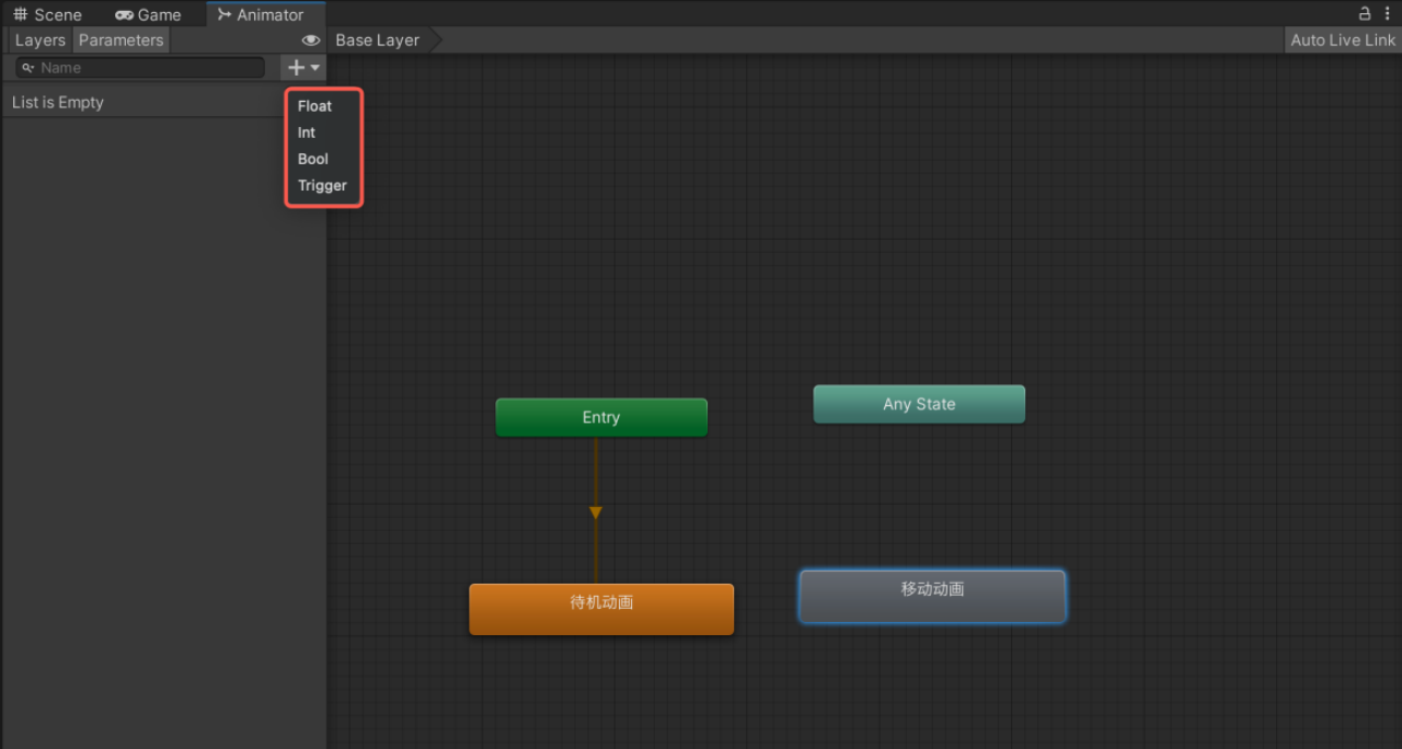 4. 参数:为动画状态机添加控制状态切换的参数。