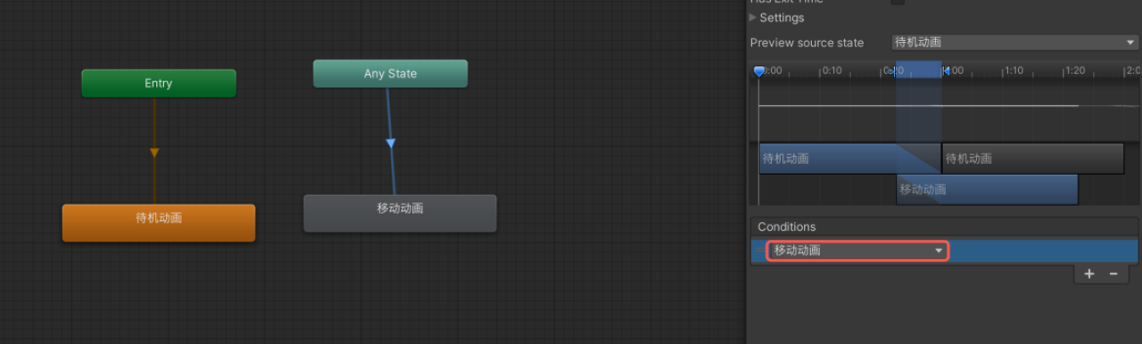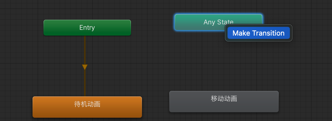 {private Animator animator;private void Awake(){animator = transform.GetComponent<Animator>();}private void Update(){if(Input.GetKeyDown(KeyCode.Alpha0)){animator.SetTrigger("待机动画");}if(Input.GetKeyDown(KeyCode.Alpha1)){animator.SetTrigger("移动动画");}}