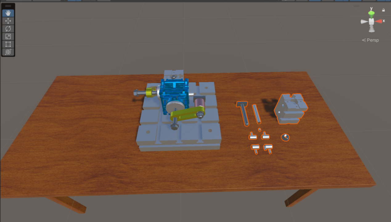 1. 将 “工业模型” 的零件,通过位移工具和旋转工具 随意摆放到桌面右边位置。