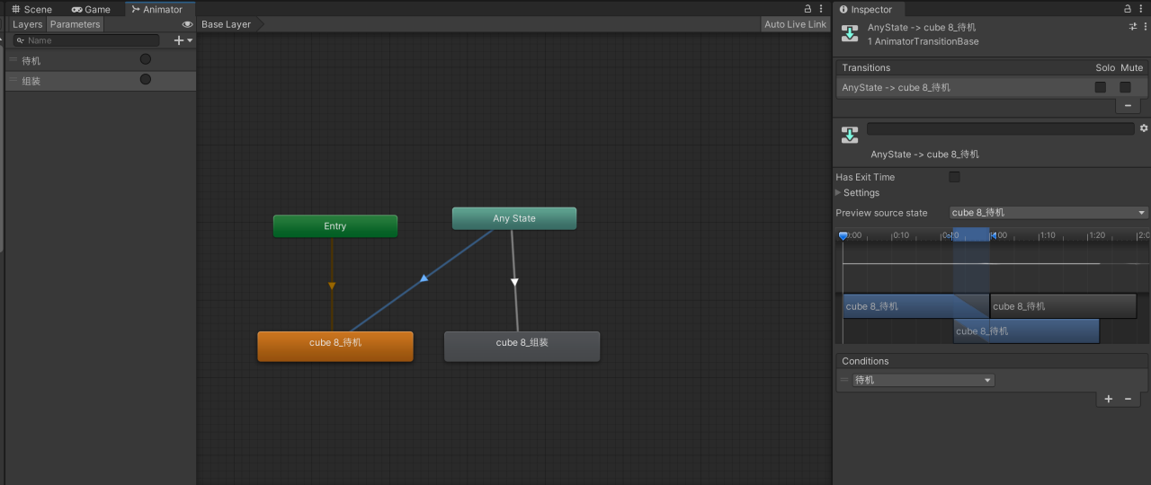 1. 选择 “cube 8” 零件,创建动画片段,并命名为“cube 8_待机”。