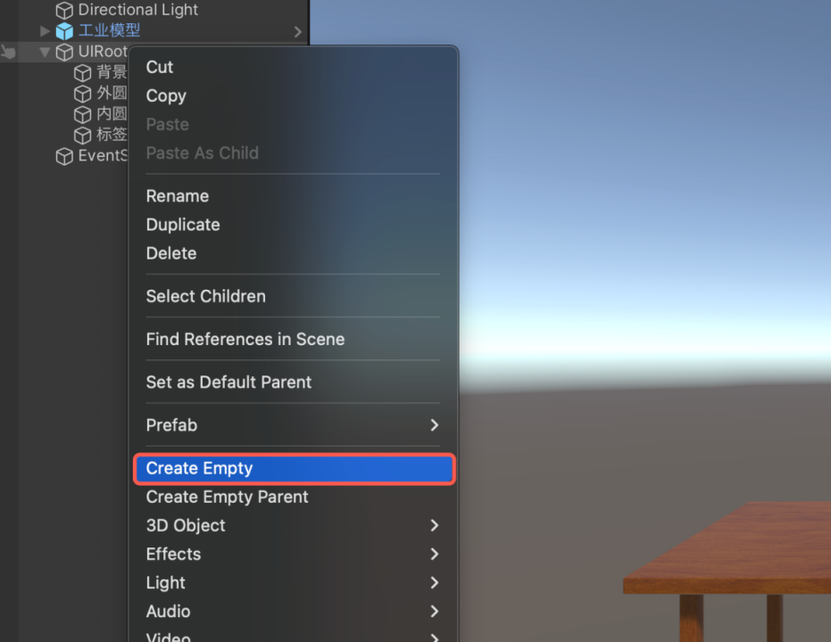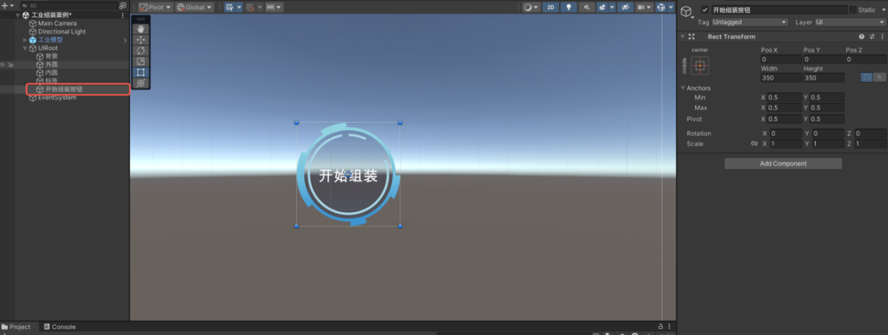 7. 新建一个空对象,命名为“开始组装按钮”。