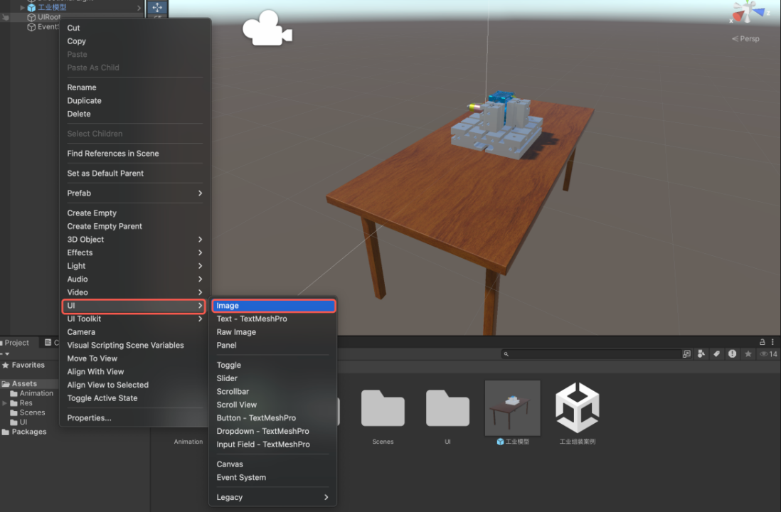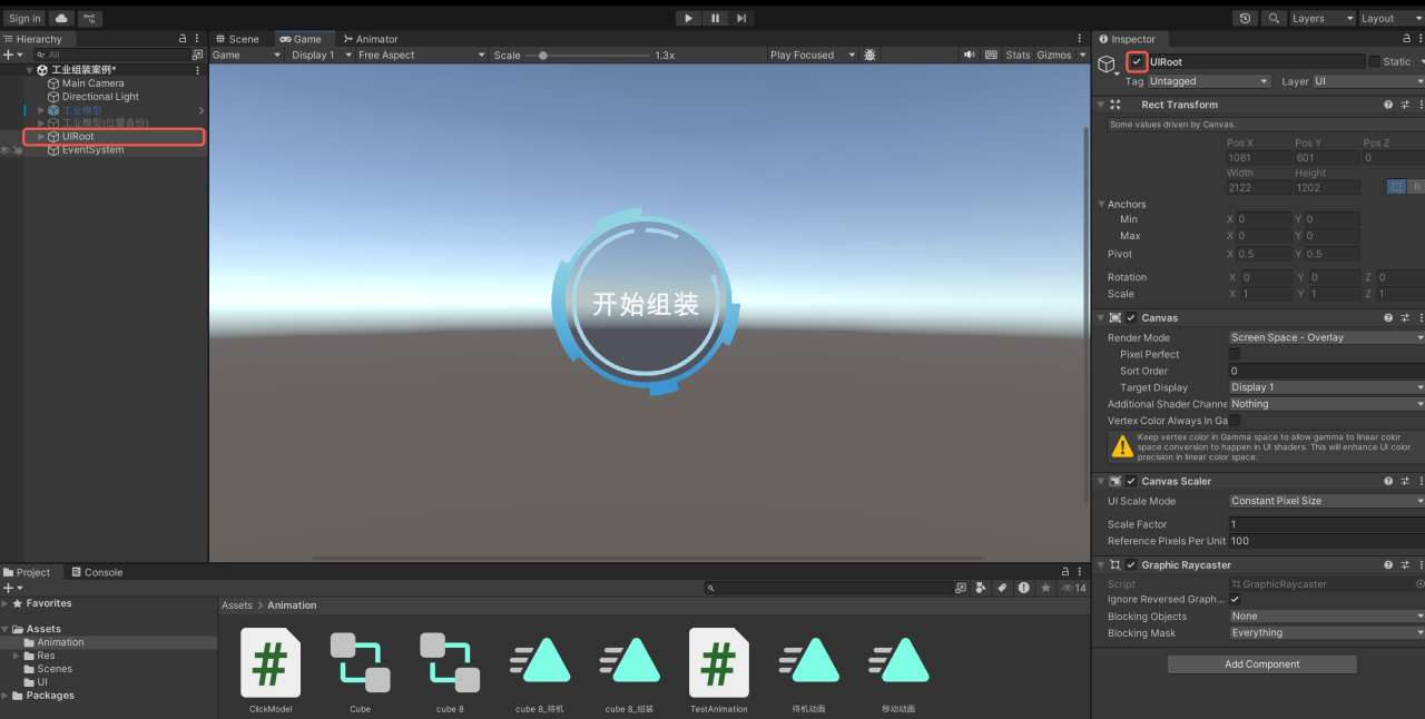 1. 将 “工业模型” 默认隐藏,并显示“UIRoot”。