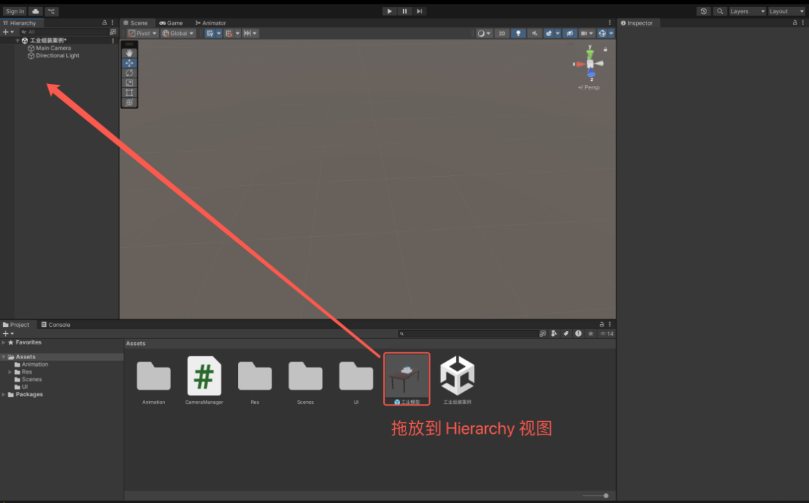 1. 将 “工业模型” 拖放到 Hierarchy(层级) 视图。