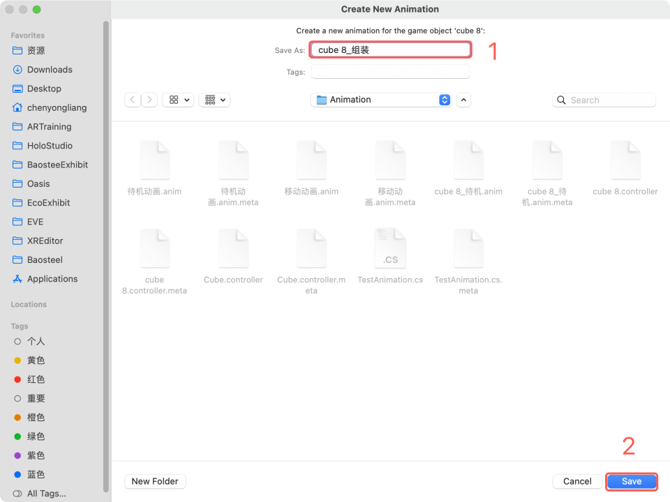 3. 新建一个新的动画片段,命名为“cube 8_组装”。