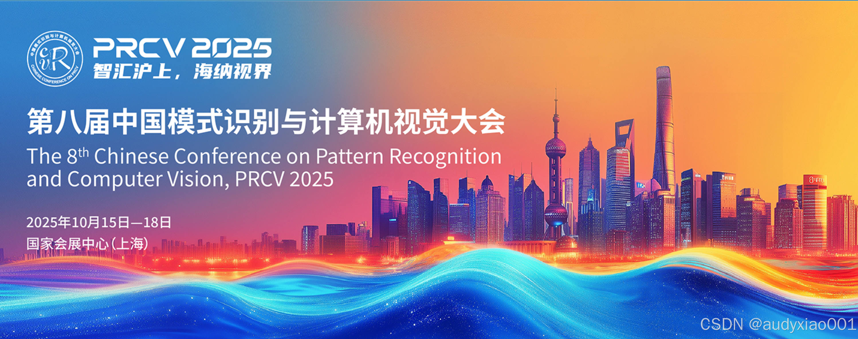 第八届中国模式识别与计算机视觉大会(The 8th Chinese Conference on Pattern Recognition and Computer Vision, PRCV 2025)于2025年10月15日至18日在国家会展中心(上海)举办。PRCV是国内模式识别和计算机视觉领域顶级学术盛会,也是国际上重要且受到国际学术界认可的会议,被中国计算机学会推荐的C类会议。本次会议由中国图象图形学学会、中国人工智能学会、中国计算机学会和中国自动化学会联合主办,上海交通大学承办。