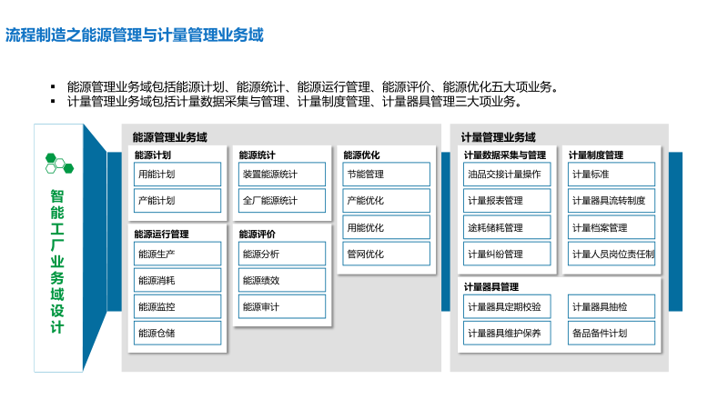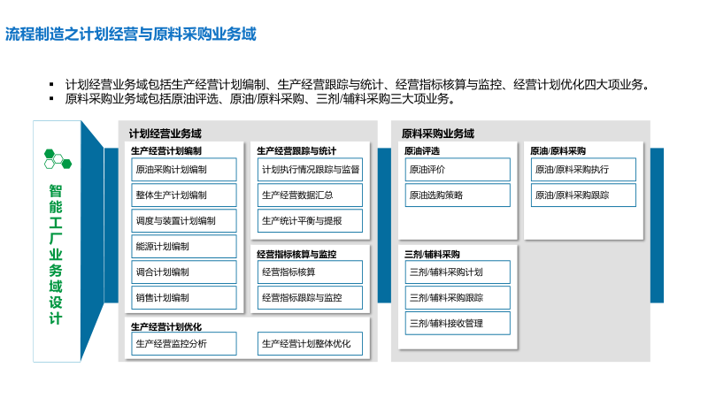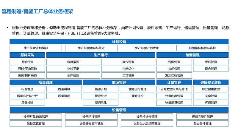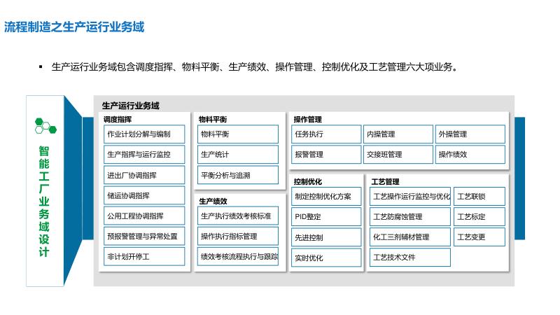 - 生产运行:涉及调度指挥、物料平衡、生产绩效、操作管理、控制优化及工艺管理,确保生产过程的高效与安全。