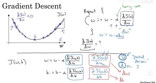 另外,想要明确一下在微积分的符号约定中,dJ/dω表示为αJ/αω,当J有两个以上的变量时,使用α来代表偏导数符号。使用α还是d取决于函数的变量个数。