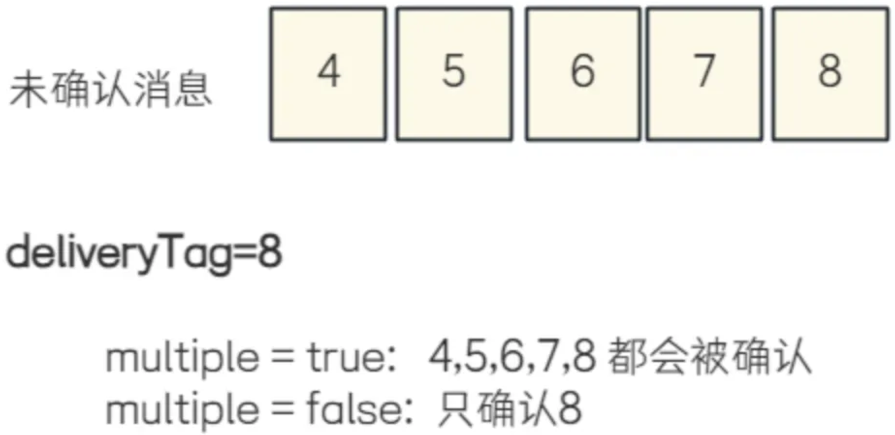 - deliveryTag:RabbitMQ 中,每个通道(Channel)会为发送给消费者的消息分配一个唯一的递增编号(deliveryTag),用于标识消息。同一个 Channel 内的 deliveryTag 是严格递增的(从 1 开始,每次 + 1),不同 Channel 的 deliveryTag 相互独立(各自从 1 开始)。