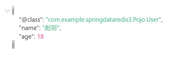 class SpringDataRedis3ApplicationTests {@Autowired RedisTemplate<String, Object> redisTemplate; // 使用自定义配置的RedisTemplate@Testvoid testSaveUser(){// 直接存储对象,自动序列化redisTemplate.opsForValue().set("user:100", new User("彪哥", 18));// 直接获取对象,自动反序列化User user = (User) redisTemplate.opsForValue().get("user:100");System.out.println("user: " + user);}