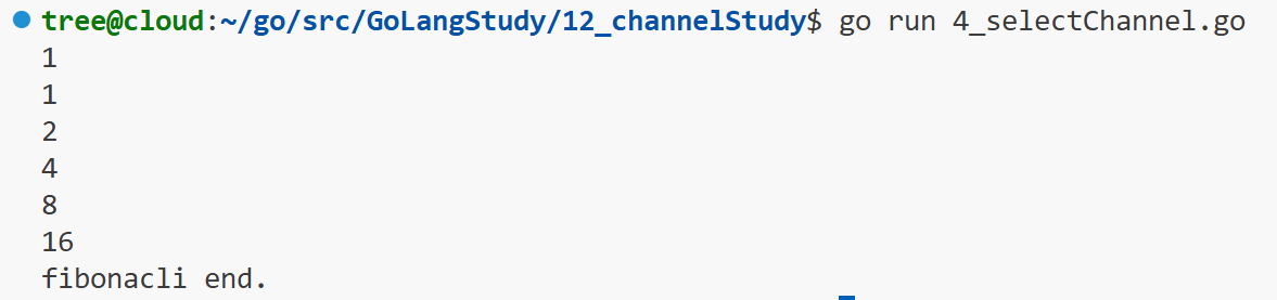 package mainimport "fmt"func fibonacli(c, quit chan int) {x, y := 1, 1for {select {case c <- x:// 如果 c 可写,则满足此 case// 什么时候不满足,取决于 sub 读的次数x = yy = x + ycase <-quit:fmt.Println("fibonacli end.")return}}