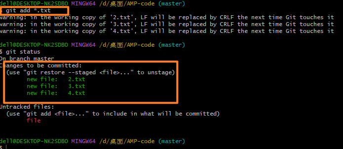 未跟踪(untrack):我们新创建的还没有被git管理的文件