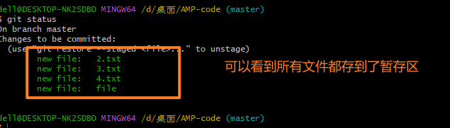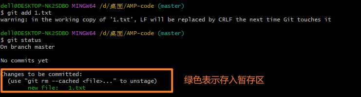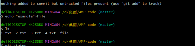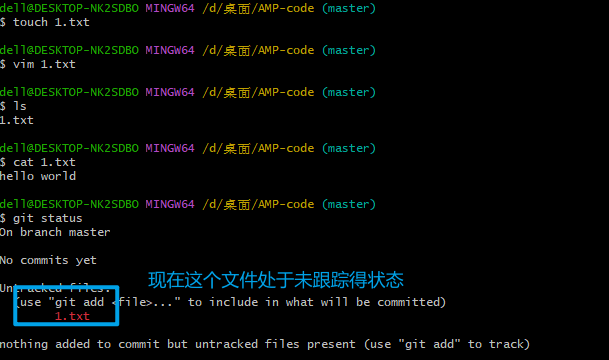 git status有多少个分支,有哪些文件处在那个状态,因为我们现在还没有提交任何的文件